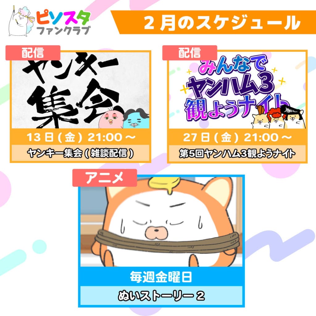 ピソスタファンクラブ(YouTubeメンバーシップ)の2月のスケジュールが決定しました!